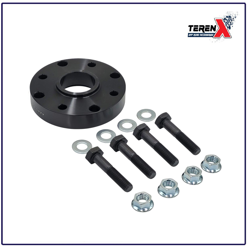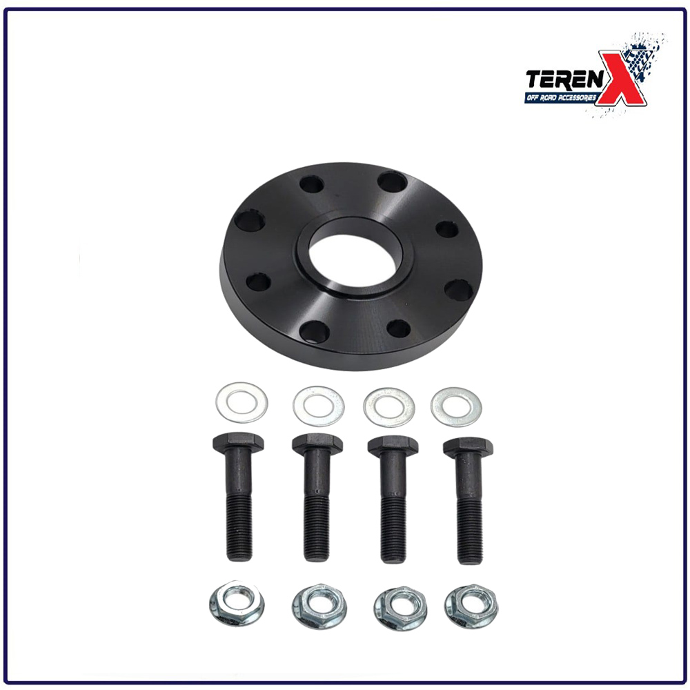 După ridicarea suspensiei, unghiul dintre cutia de transfer și diferențial se modifică, ceea ce poate duce la vibrații, uzură prematură a crucilor cardanice și solicitări suplimentare asupra transmisiei. Acest distanțier se montează pe flanșa arborelui cardanic și ajută la readucerea geometriei transmisiei într-o zonă de funcționare sigură.