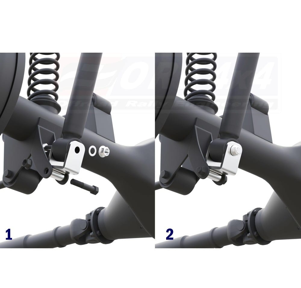 Aceste distanțiere se montează la prinderea inferioară a amortizorului, atât pe față, cât și pe spate, restabilind geometria corectă a suspensiei și prevenind tensionarea sau limitarea cursei amortizorului.