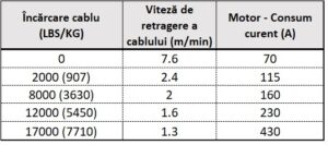 Încărcare cablu vs. Viteză și Consum Motor                Capacitate de Tracțiune pe Strat